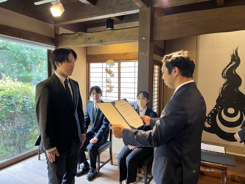 今年は3名の学生さんを迎え、内定証書授与を行いました。